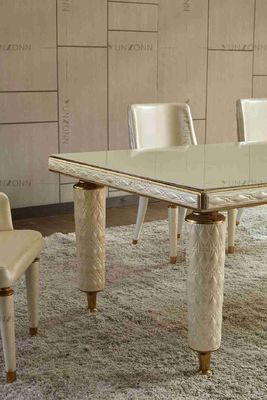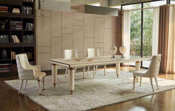 가정을 위한 자수 가죽 덮개 백색 부드럽게 한 유리제 정상 스테인리스 구조를 가진 식탁