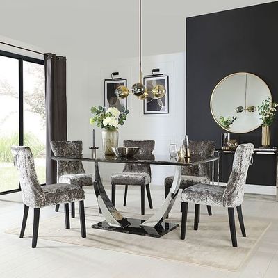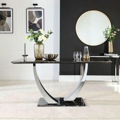 블랙 대리석 크롬 ss스테인리스 실버 식탁 150×90×75 사이즈