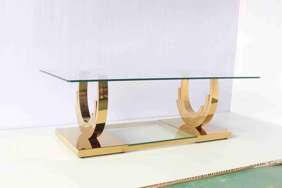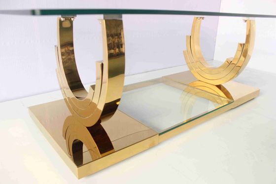 이춘장 가구는 모든 고객들에게 현대이고 내구성 제품을 제조하는데 전념하고, 미국 스타일 u-형태의 베이스의 이 모델이 매우 거실 용법에 적합하고, 우리가 제품이 오랫동안 빛나는 금을 유지할 수 있게 진공 티 금을 사용합니다. 드러내기 위한 한 편의 광대한 투명 유리 테이블 표면이 품목을 장식한 것을 자랑하면서, 이 커피 테이블은 당신의 거실을 위한 완전한 현대 액세서리 조각입니다. 금색에서 완성되어 테이블 프레임은 안정성을 추가하기 위해 두꺼운 튜브를 사용합니다.