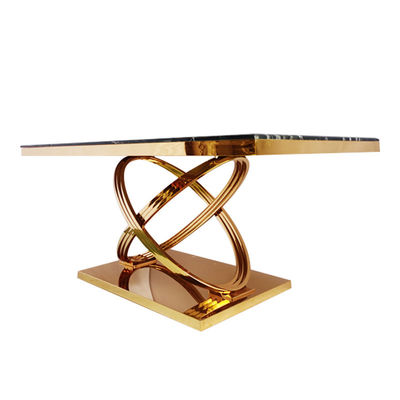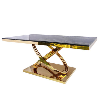 6 좌석 식탁을 도금처리하는 인공 대리석 상부 골드
