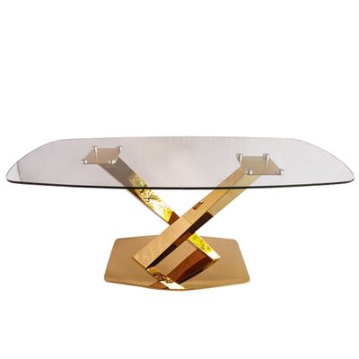 6 좌석 식탁을 도금처리하는 인공 대리석 상부 골드
