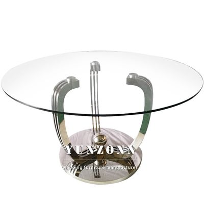 금 토대와 럭셔리 모델 라운드 식탁 투명한 10 밀리미터 두꺼운 템퍼드 글라스 상부 0