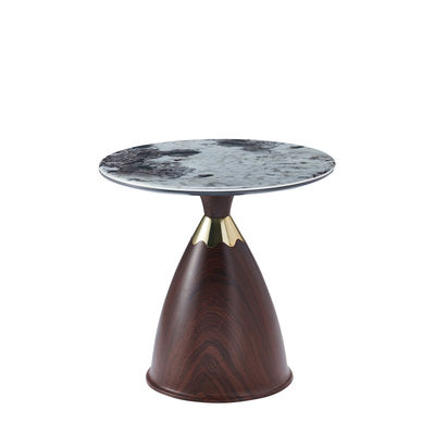 현대 경쾌한 럭셔리 둥근 거실 검은 대리석 모양 유리 상단 금속 기반 칸 테이블 옆 테이블