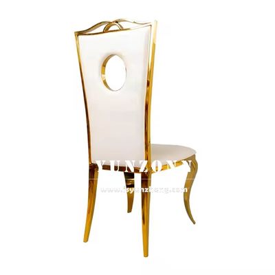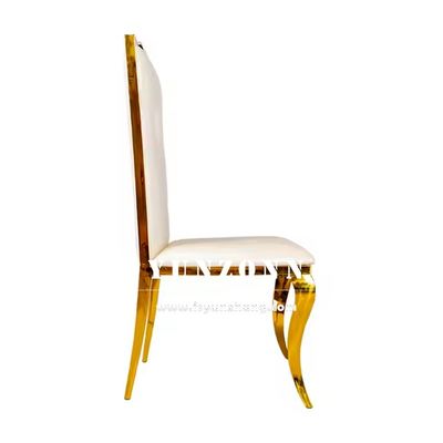 | 제품 이름: | 금색 스테인레스 스틸 식탁 의자 호텔 파티 이벤트용 고급 흰색 PU 가죽 웨딩 의자 |