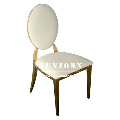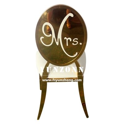 | 제품 이름: | 럭셔리 골드 스테인레스 스틸 원형 뒷면 신랑 신부 결혼식 잔치 의자 |