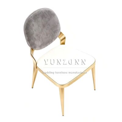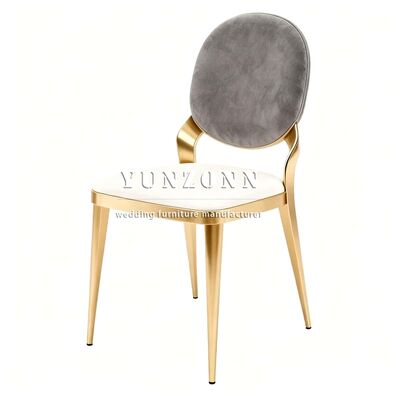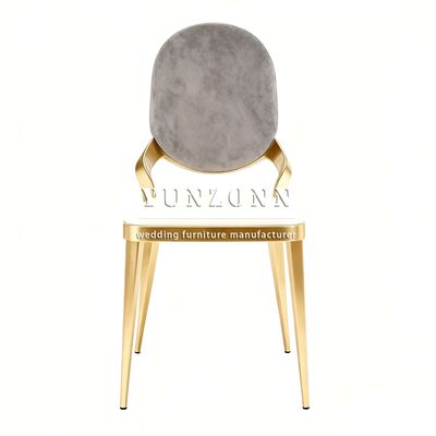 도매 럭셔리 메탈 및 그레이 패브릭 라운드 백 스태킹 골드 호텔 연회 웨딩 이벤트 의자 판매 |