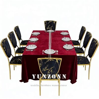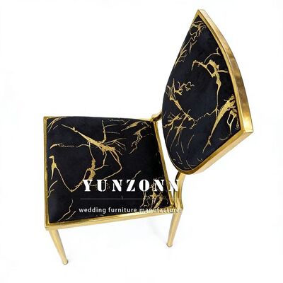 | 제품 이름: | 금 테마 결혼식 및 호텔 블랙 벨벳 구부러진 금속 겹쳐질 수 있는 잔치 의자 |