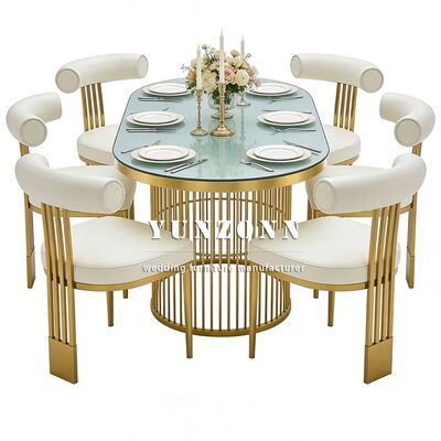 | Product Name: | Luxury Stainless Steel Restaurant Banquet Party Modern Dining Wedding Tempered Glass Durable Table |