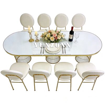 | Product Name: | New Style Event Banquet Dining Table Oval Shape Gold Steel Legs Dinner Room Wedding Table for Event Decor |