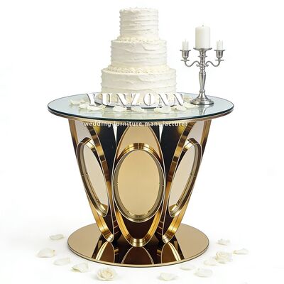 | Product Name: | Wedding Furniture Gold Design Stainless Steel Round Cake Table New Trendy Cake Table Design |