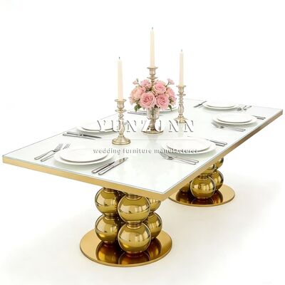 | Product Name: | Modern Luxury Design Golden Wedding Table Mirror Glass Top Stainless Steel Restaurant & Hotel Banquet Dining Furniture |