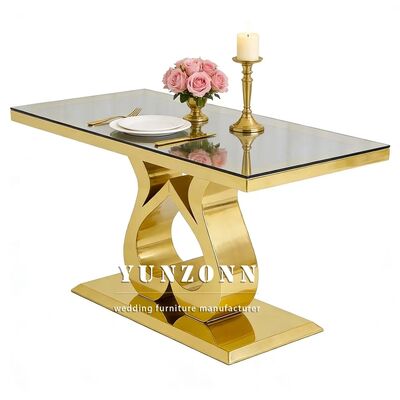 | 제품명: | 저렴한 호텔 이벤트 파티 가구 신부 신랑 테이블 골드 스테인리스 스틸 유리 상판 직사각형 웨딩 식탁 |