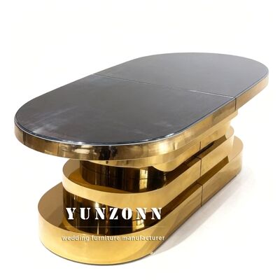 | 제품 이름: | 파티 가구 금색 스테인레스 스틸 유리 거울 결혼식 테이블 위 |