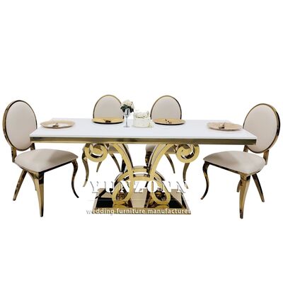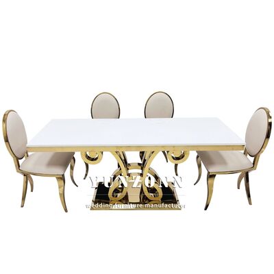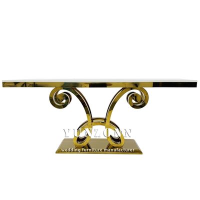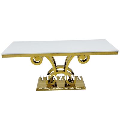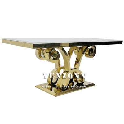 | 제품 이름: | 새 디자인 럭셔리 직사각형 유리 상단 금 스테인레스 스틸 웨딩 테이블 파티 사용 |