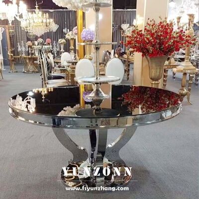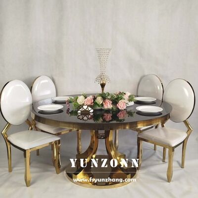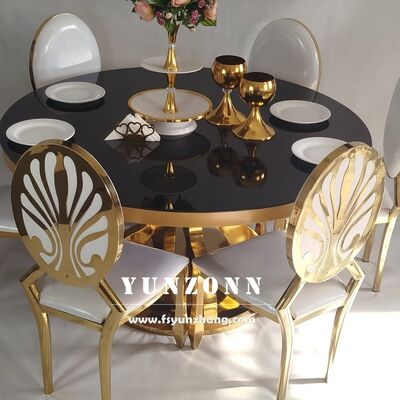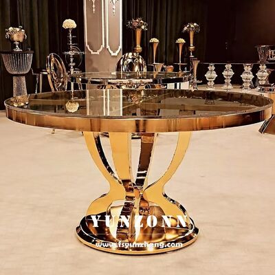 | 제품 이름: | 맞춤 현대 스테인리스 스틸 기판 디자인 금 호텔 로열 레스토랑 고급 둥근 유리 식탁 |