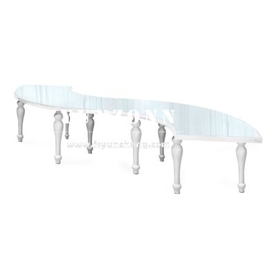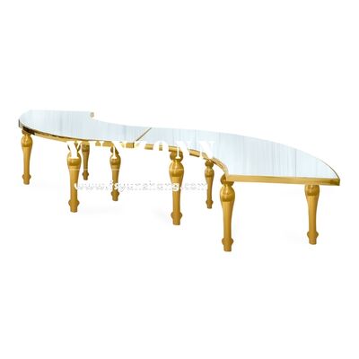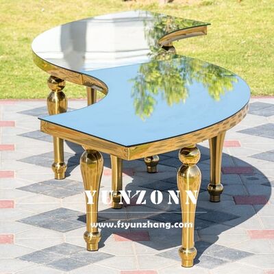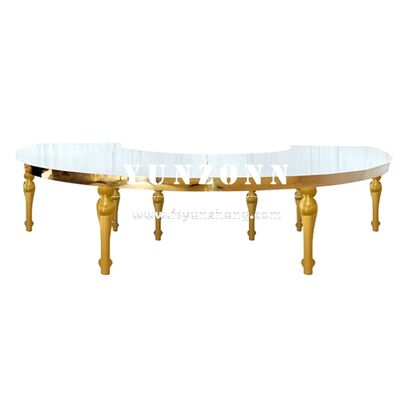 | 제품명: | 골드/화이트/블랙 프레임 스테인리스 스틸 하프 서클 뱀 모양 웨딩 연회 중앙 식탁 거실 호텔 가구 | ||