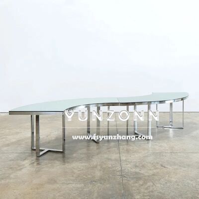 | 제품 이름: | 럭셔리 블랙 글래스 반달 정월 S형 식탁 스테인레스 스틸 잔치 웨딩 이벤트 테이블 호텔 |