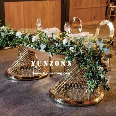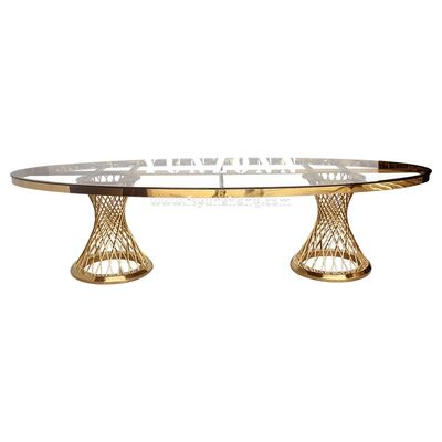 | 제품명: | 결혼식 파티 및 호텔 가구용 럭셔리 골드 스테인리스 스틸 타원형 테이블 및 의자 세트 |