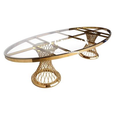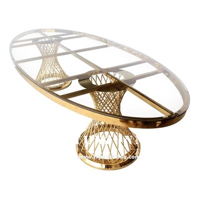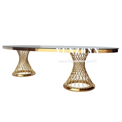 결혼식 파티 및 호텔 가구용 럭셔리 골드 스테인리스 스틸 타원형 테이블 및 의자 세트
