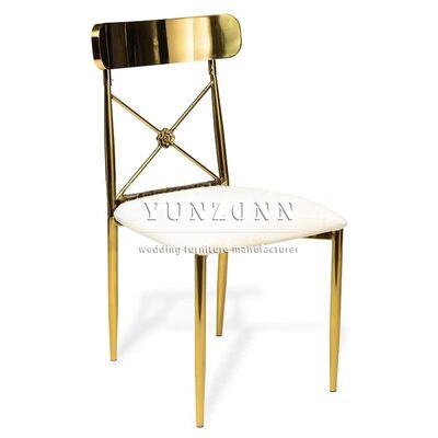 | 제품 이름: | 고품질 스테인레스 스틸 웨딩 체이스 크로스 백 호텔 홀 파티 이벤트용 식탁 의자 이벤트용 골드 레스토랑 의자 |