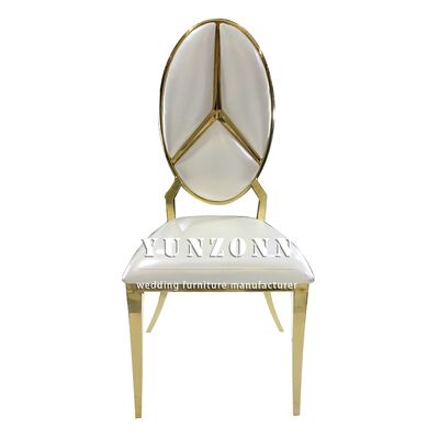 | 제품 이름: | 금색 스테인레스 스틸 프레임 유명 자동차 브랜드 벤스 모양 타원형 뒷면 스테인레스 스틸 식탁 의자 |