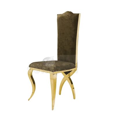 | 제품 이름: | 호텔 및 결혼식용 골든 스테인리스 스틸의 고급 왕좌 높은 등반 식탁 의자 |