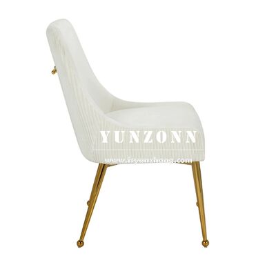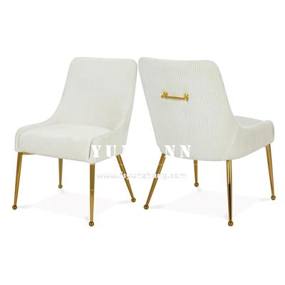 | 제품명: | 다이너룸용 럭셔리 호텔 골드 스테인리스 스틸 튜브형 투프트 핸들 라인 백 베이지 벨벳 업홀스터드 식탁 의자 |